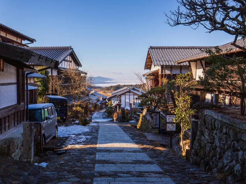 Depart Kyoto by train and transfer into the mountains of Gifu Prefecture, where the Nakasendo Way begins in earnest. Arrive in Magome-juku, a lovingly restored post town once bustling with travelers on the Edo-period highway. Walk through cobbled lanes lined with wooden inns and water wheels, taking in views of the Kiso Valley below. In the afternoon, begin your first walk on the Nakasendo trail, a scenic stretch connecting Magome to the even quieter village of Tsumago. The path winds through cedar forests and bamboo groves, past wayside shrines and tea houses where weary travelers once paused. This is a journey best taken slowly—each footstep echoing those of centuries past. End the day with a warm welcome at a family-run inn, where you’ll soak in an onsen bath and dine on local mountain fare.